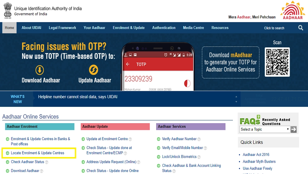 Aadhaar Enrolment Centres (Photo Credits: UIDAI) - The verification code will be sent to your registered phone number. If your number is not linked with Aadhaar, you will not be able to complete the verification process.