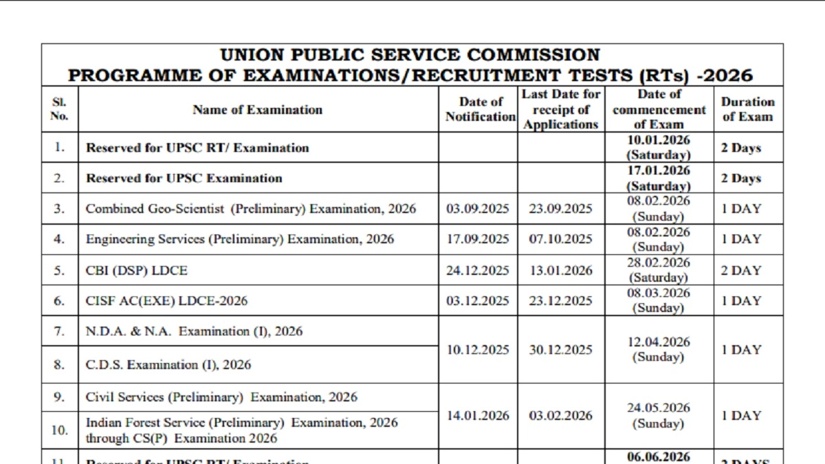 Here's the direct link to download UPSC Exam Calendar 2026.