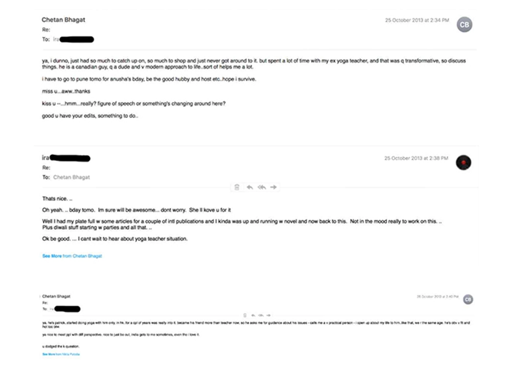 After author Chetan Bhagat released alleged "miss you, kiss you" emails of writer columnists Ira Trivedi, she has exposed the emails that were sent to her by Bhagat. As #MeToo movement gained strength in India, Trivedi had accused Bhagat of sexual harassment earlier this month. In response, he shared screenshots of personal emails that Trivedi sent which in which she apparently wanted to "kiss" him.