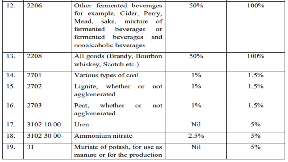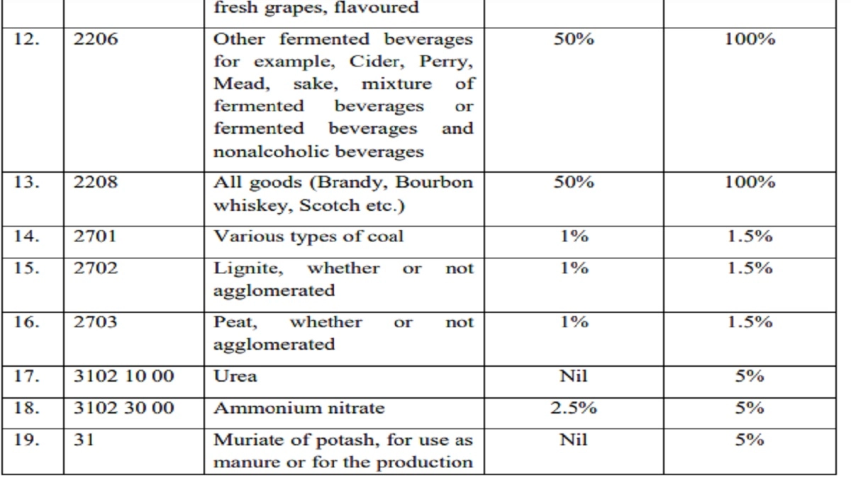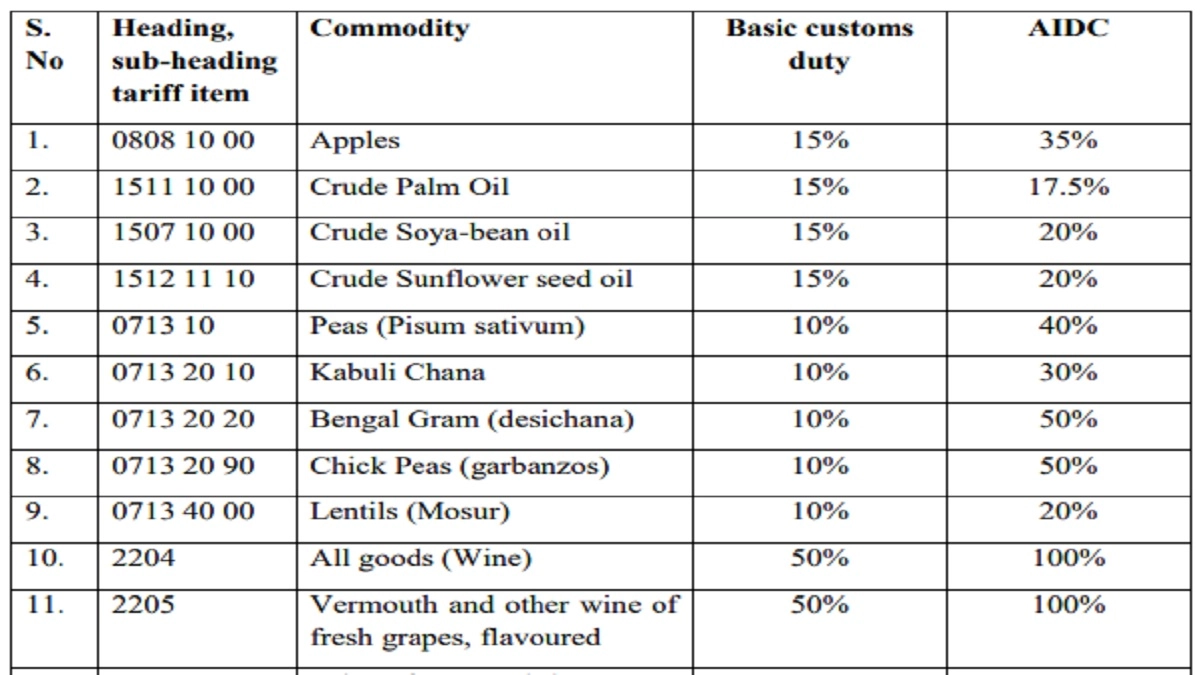 Here is the List of Products And Their Basic Customs Duty And AIDC: