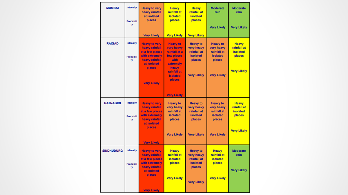Thane and surrounding areas like Raigad and Palghar are also expected to see significant rainfall as IMD has issued orange alert for these district. An orange alert indicates heavy rainfall exceeding 64.5 mm in 24 hours, with the potential to disrupt normal life and cause flooding in low-lying areas.