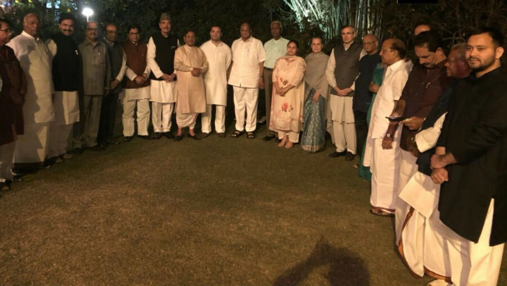 New Delhi, March 13: Leaders of 20 opposition parties tonight got together at a dinner hosted by UPA chairperson Sonia Gandhi, where possibilities of putting up a united front to defeat the BJP in the next general elections were discussed.