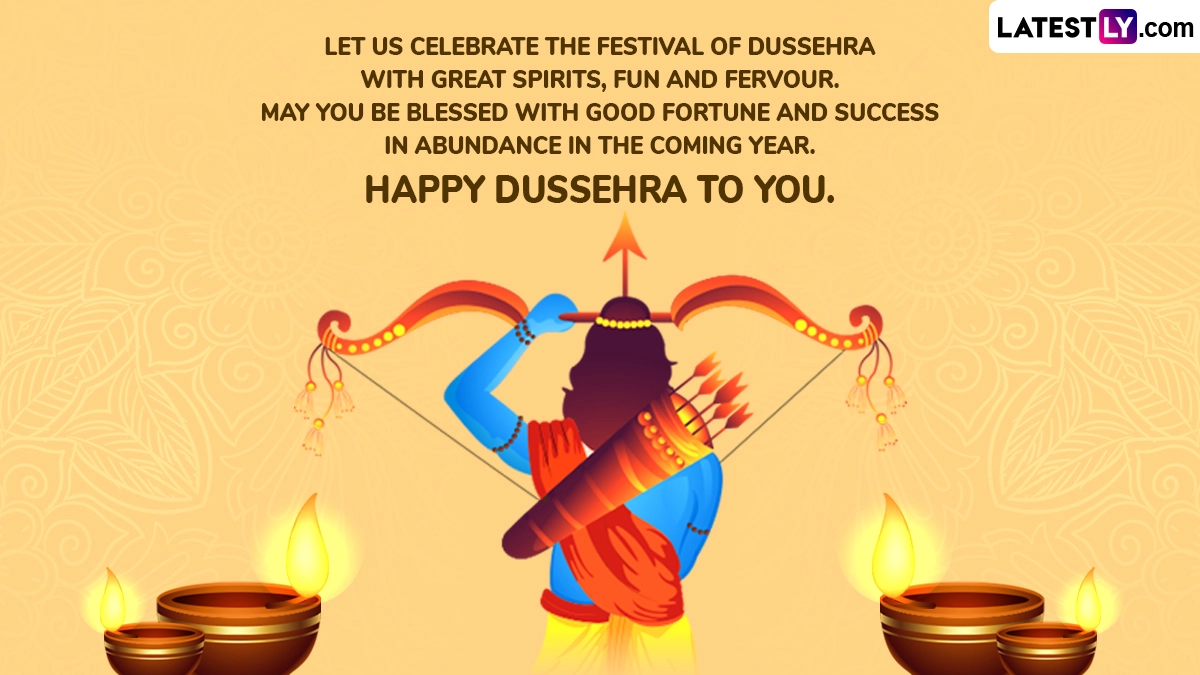 Happy Dussehra 2024 Wishes and Ram Ravan Yudh Images: Dussehra, also known as Vijayadashami, is considered one of the most significant festivals in the Hindu calendar. It symbolises the triumph of good over evil. Celebrated in many states in India, this auspicious day marks the end of the nine-day Navratri festival and is observed with great fervour, devotion and enthusiasm. Dussehra 2024 falls on October 13 and commemorates the victory of Lord Rama over the demon king Ravana and Goddess Durga’s triumph over the buffalo demon Mahishasura. Dussehra is celebrated with various rituals, including Ravan Dahan, where the effigies of Ravana, Kumbhakarna, and Meghnath are set ablaze. To celebrate Dussehra 2024, you can share Happy Dussehra 2024 wishes, Ram Ravan Yudh images, Vijayadashami greetings, Dussehra photos, WhatsApp messages and greetings. Happy Dussehra 2024 Wishes, Greetings and Dasara HD Images: WhatsApp Messages, Instagram Captions, Quotes and Wallpapers To Share Vijayadashami.