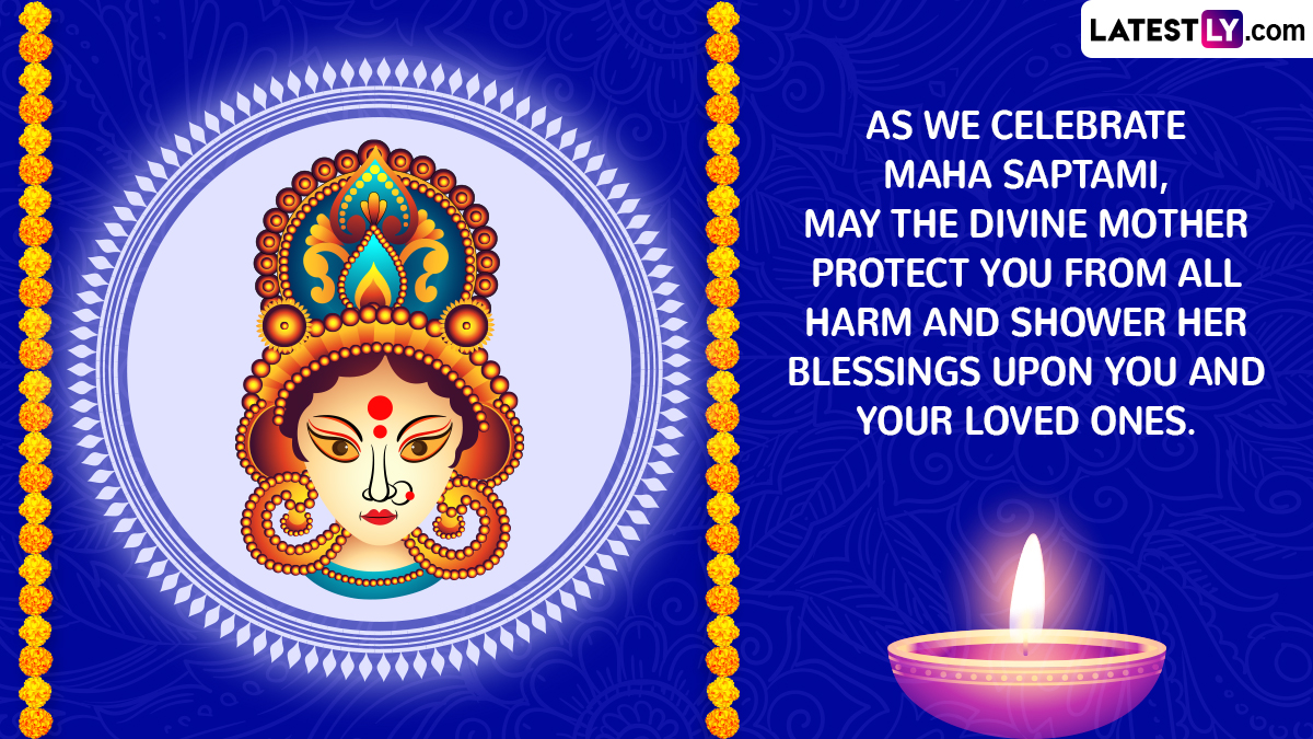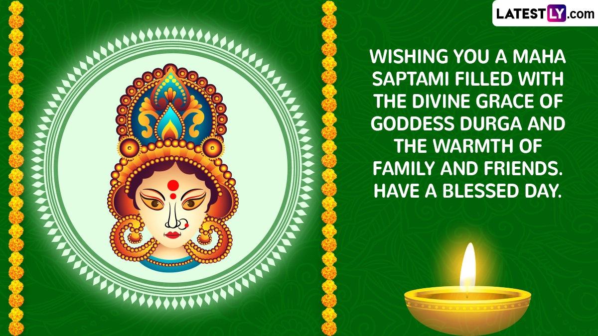 WhatsApp Message Reads: Wishing You a Maha Saptami Filled With Love, Laughter, and the Countless Blessings of Goddess Durga. Enjoy the Festivities to the Fullest