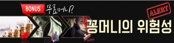 꽁머니의 가장 큰 위험은 사기 업체들을 만날 확률이 굉장히 높다는 것에 있습니다. 이런 놀이터들을 우리는 먹튀 사이트라 부르죠. 먹튀사이트들은 꽁머니를 통해 홍보, 광고를 하고 회원을 유치하면서, 장점만 내세운 여러가지 매력적인 조건을 내세우지만, 이 꽁머니를 통해 사용자가 환전을 시도하거나 추가적인 혜택을 요청할 경우 결국 문제가 발생하곤 합니다