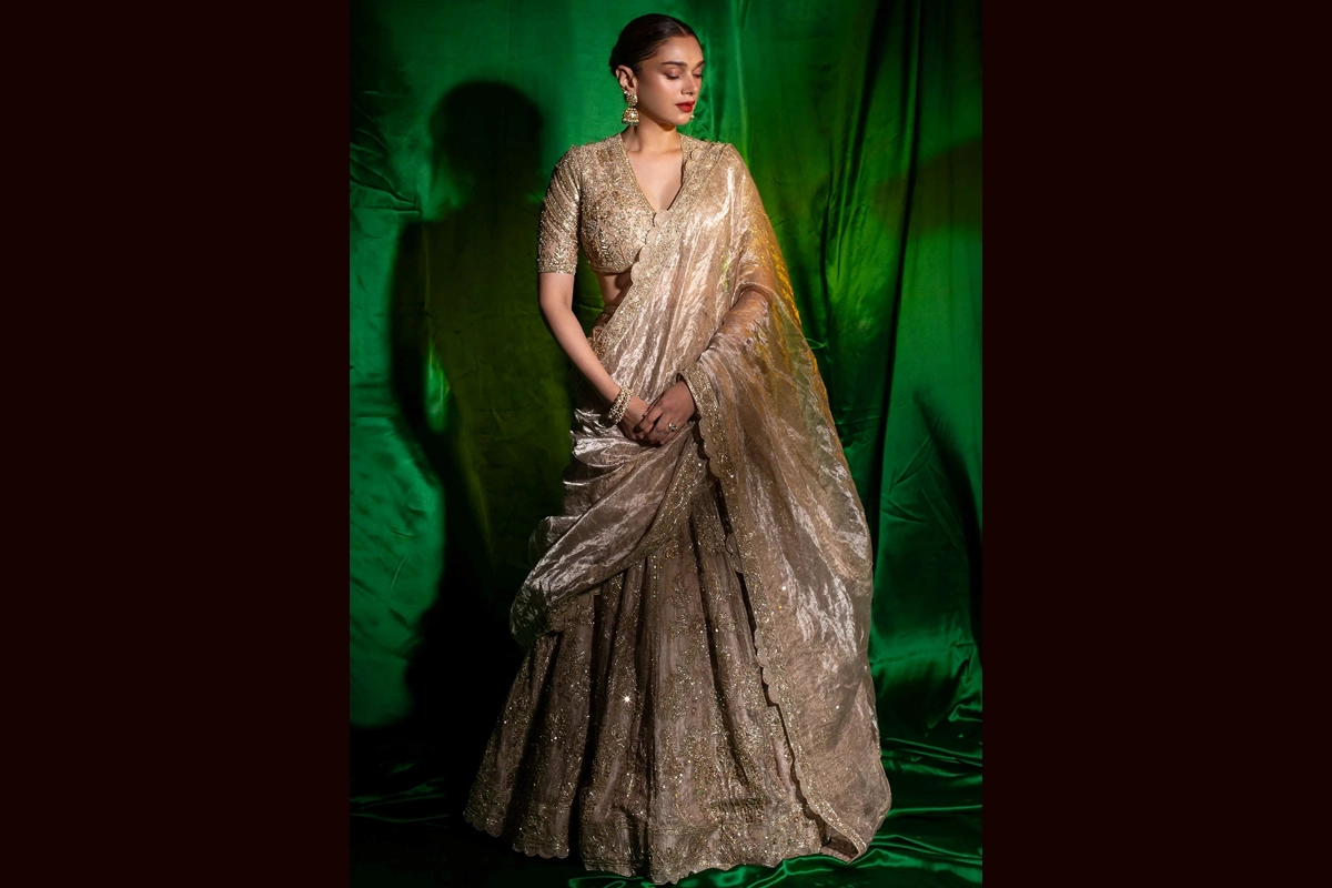 Accessories are also pivotal in enhancing her lehenga looks. Aditi often complements her outfits with statement jewellery, traditional juttis, and elegant clutches, which serve to elevate her overall aesthetic. With her captivating presence and keen fashion sensibility, Aditi Rao Hydari has undoubtedly set a benchmark in lehenga styling, leaving an indelible mark on the fashion scene.