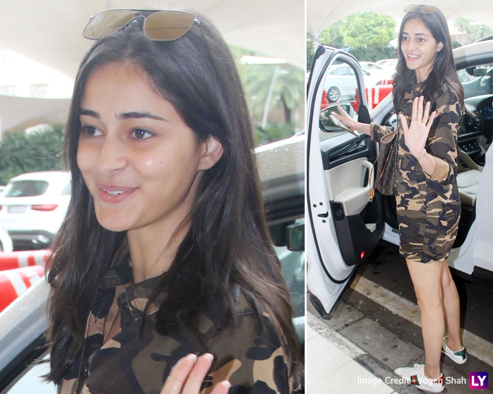 Ananya wore a camouflage print jumpsuit, which was quite quirky in itself. Her pretty face with extremely minimalistic makeup, here, is a breath of fresh air. You can see her eye bags, like you'd see on a regular millennial. She was carrying shades with her, but she chose to flaunt her eyes instead of wearing those. If only more celebs stepped out looking like Ananya, we'd have a world a little less obsessed with the vanity. Here's How Kartik Aaryan Responded When His Pati Patni Aur Woh Co-Star Ananya Panday Said She's Allergic to Tea (Watch Video).