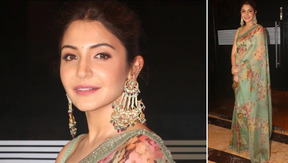 Anushka Sharma loves her Sabyasachi sarees, doesn't she? She's a Sabya loyalist and leaves no chance to flaunt his uber chic designs. For her recent social outing for NBT Utsav Awards 2019, the Pari actress picked a green floral print saree and we must say, she looked refreshing. Anushka accessorised her outfit with a pair of traditional earrings and rest was sorted already.