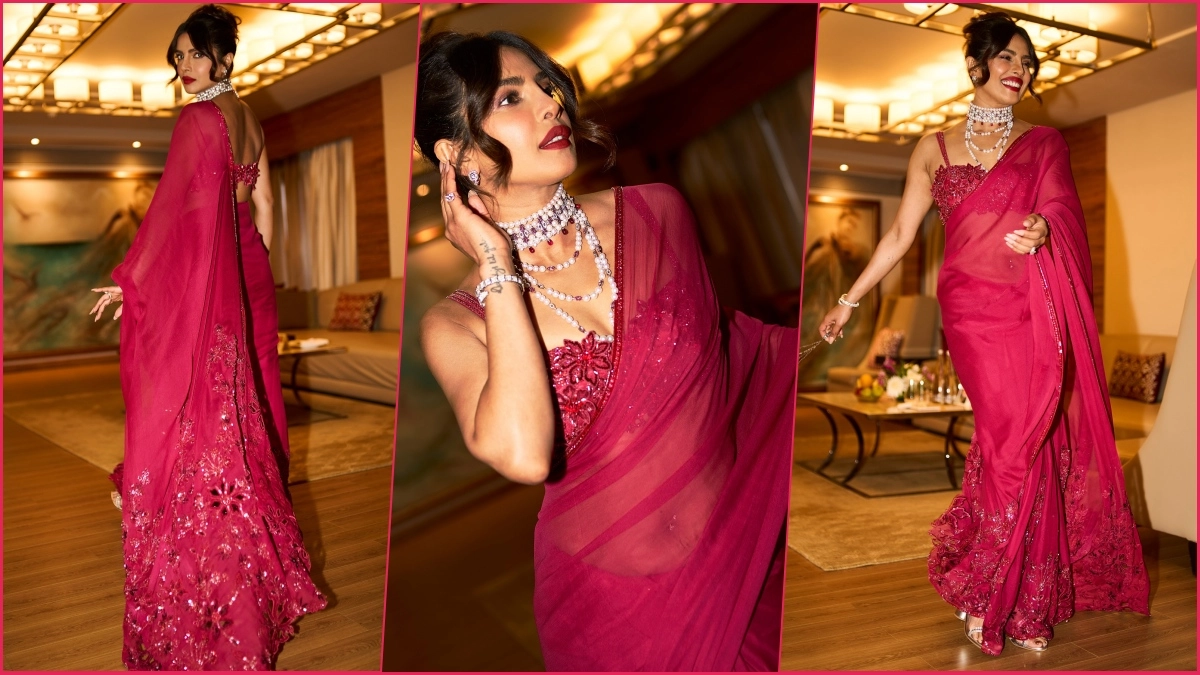 Priyanka blends tradition with modern flair effortlessly. For a contemporary twist on the classic saree, choose a pre-draped style in a luxurious fabric like silk or chiffon. Go for pastel shades paired with a statement blouse. Finish with minimal jewellery to keep the focus on the saree.