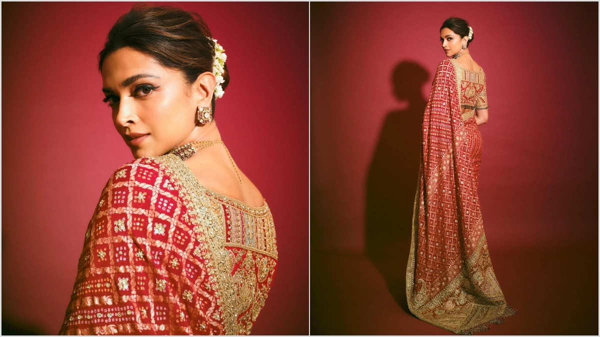 You can also take inspiration from Deepika Padukone's sari look for the festivity. The actor looks ravishing in this red-coloured bandhani work sari with a gajra-tied hairdo. This entire attire and look is just perfect for this auspicious occasion.