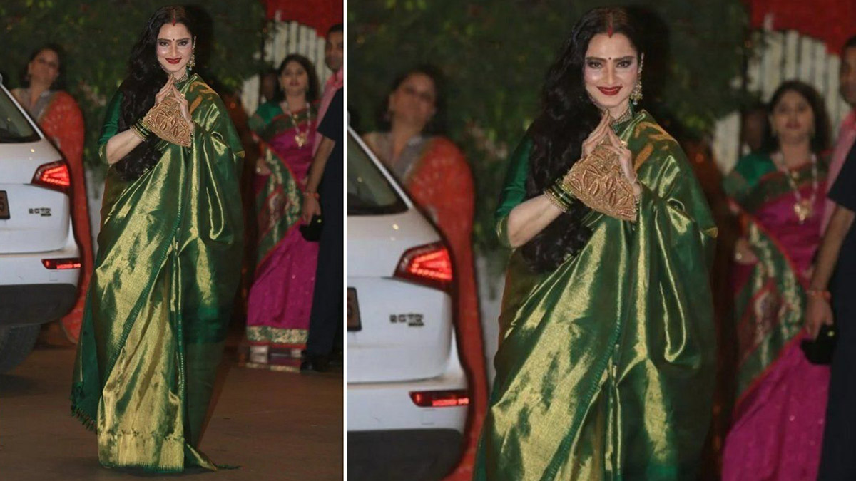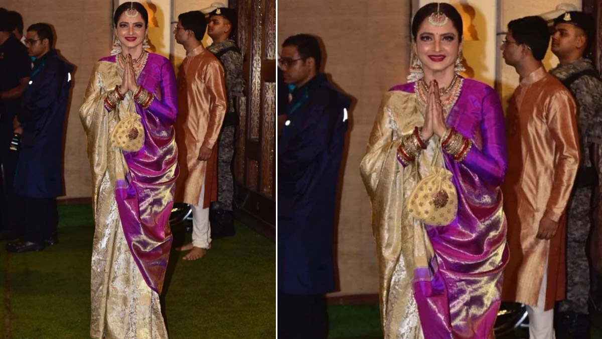 Whether adorned with traditional motifs or contemporary designs, Kanjeevaram sarees hold a special place in Rekha's wardrobe, reflecting her appreciation for their timeless charm and exquisite craftsmanship. As she continues to captivate audiences with her impeccable style, Rekha's affinity for Kanjeevaram sarees serves as a testament to their enduring allure and the way they effortlessly elevate any occasion with their sheer magnificence.