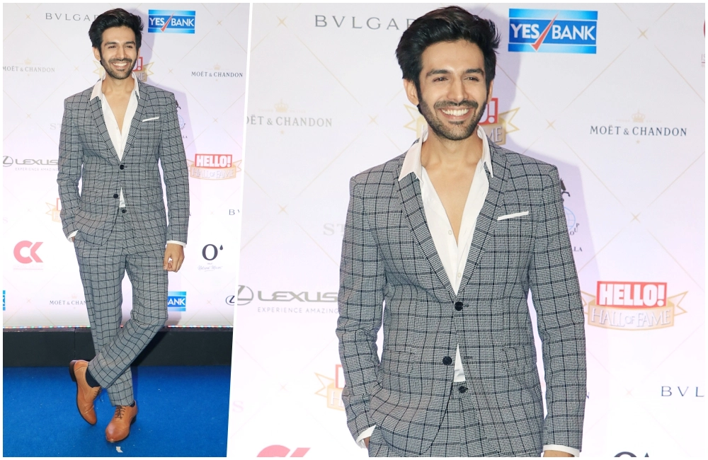 The chocolate boy with a killer smile, Kartik Aaryan nailed his look with utmost simplicity. The actor was all smiles donning a checkered grey suit and tan shoes. His recent movie Son uke Titu ki Sweety has done pretty well at the box-office.
