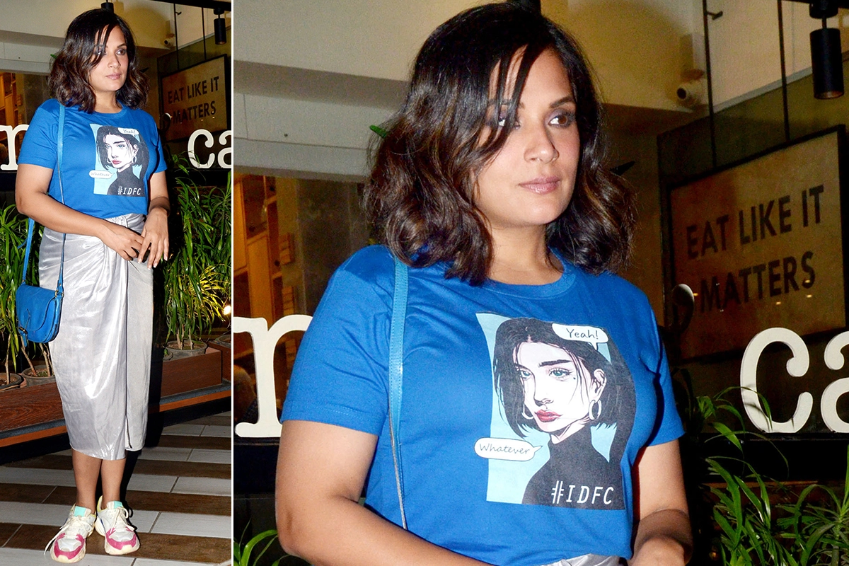 Not that Richa Chadha has an impeccable taste in fashion but she can at least try, right? A plain silver skirt paired with a blue t-shirt is not glamorous at all. We hope she's taking note of it.