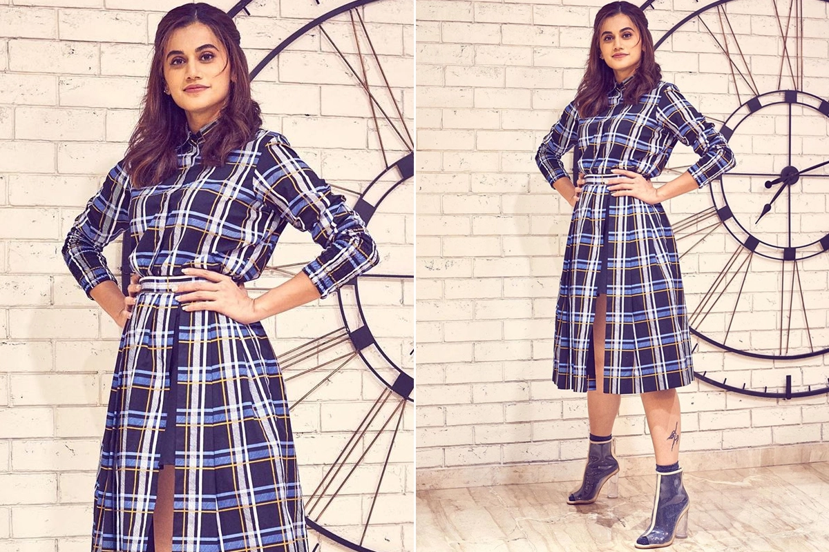 While plaid is back in trend, Taapsee Pannu is unable to make the most of it. The checkered dress is so 80s. Its front slit is the only glam factor attached to it but unfortunately, it does nothing or very little to savour it.
