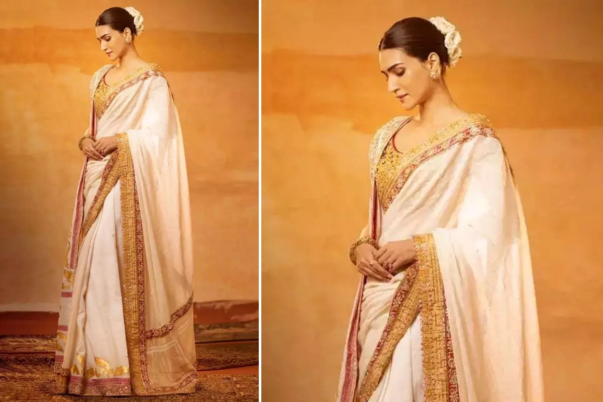 Kriti Sanon has established herself as a prominent figure in the Indian film industry, not just for her acting prowess but also for her impeccable fashion sense. One trend that has become synonymous with her style is her love for white sarees. The simplicity and elegance of a white saree resonate deeply with Kriti, reflecting a timeless beauty that transcends the bounds of conventional fashion. Crew Actress Kriti Sanon Has the Prettiest Collection of Earrings, Check Out Pics.