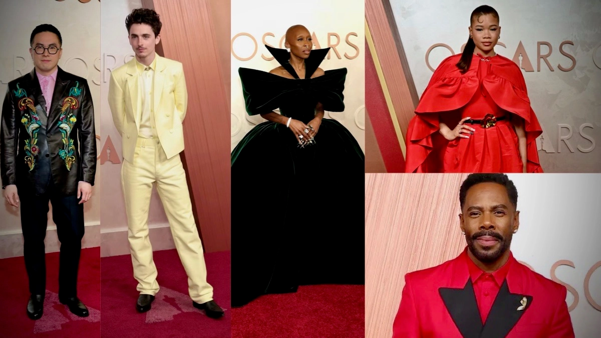 Cynthia Erivo made a bold statement in a custom Louis Vuitton creation that embodied every girlâs Cinderella fantasy. Felicity Jones shimmered in a metallic pistachio grey gown by Armani PrivÃĐ, inspiring those who appreciate the beauty of understated elegance. Lupita Nyongâo stole hearts in an all-Chanel ensemble, while Raye stunned in a fiery red Vivienne Westwood creation accessorized with Lorraine Schwartz jewels. Meanwhile, Doja Cat turned heads in a daring leopard print Balmain outfit, paired with bold Messika jewellery and an unforgettable blonde mohawk. Retro Hollywood glamour sprang to life with Margaret Qualleyâs elegant updo and custom Chanel jewellery, while the ever-sparkly Emma Stone glowed brilliantly in her champagne gold Louis Vuitton gown.