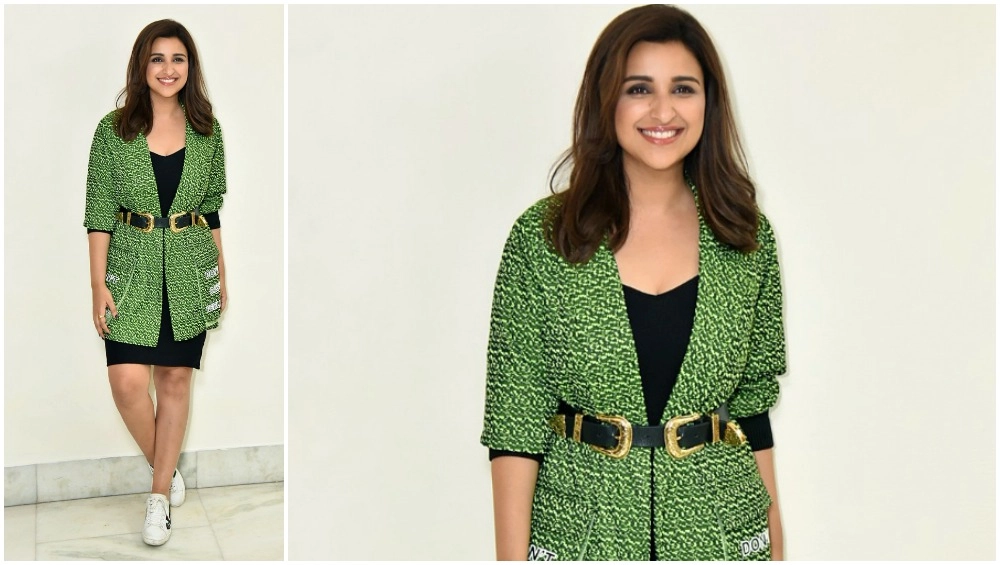 We loved Parineeti Chopra's little black dress sans her green printed jacket and that hideous belt of course. Actually, it's only her waist belt that we hate, the jacket is still fine. Fortunately, Pari didn't go overboard with her styling and settled for a simple look that saved the day for her.