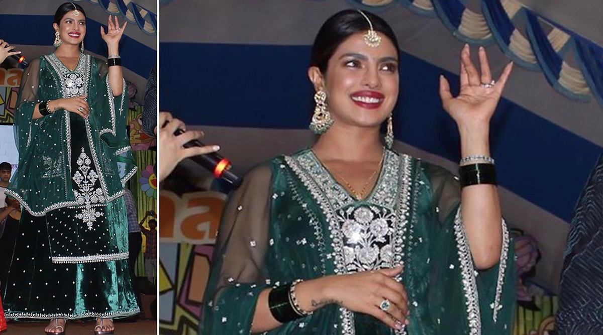This is clearly not what we expect from a fashionista like Priyanka Chopra! A green velvet ethnic ensemble with silver embroidery and gaudy jewellery takes us back in time when she was just starting in Bollywood. Obviously, she was a bit naive with her fashion choices then but we don't expect such a disastrous outing from her today.