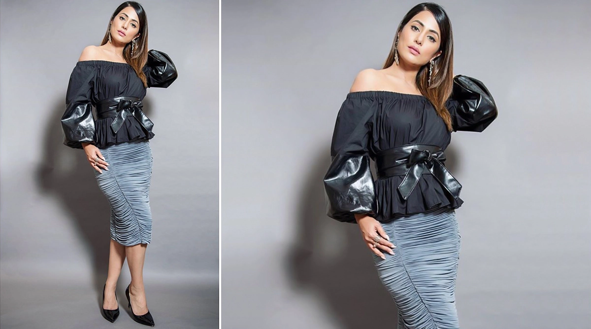 Hina Khan usually doesn't disappoint but there are days when her outings are questionable. Like in this case! The grey ruched skirt paired with an off-shoulder black top and a black leather belt is just the classic case of too many things put together. And we all know what happens when too many cooks come together... yes, they spoil the broth. Hina Khan's Style File for Hacked Promotions was a Blend of Everything that's Sweet and Stylish (View Pics).