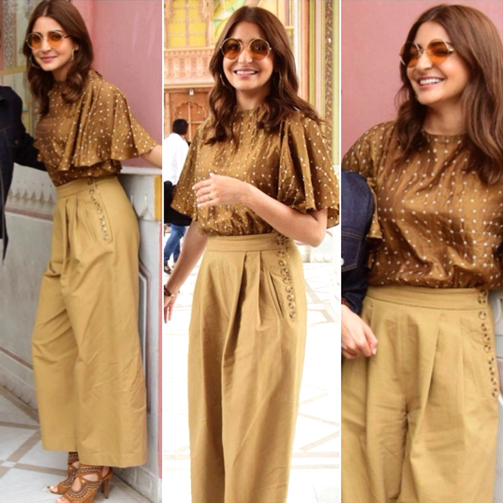 Anushka Sharma started her Sui Dhaaga promotions on a rather fashionably sad note. Though the silhouette is pretty basic and you can't go wrong with it, yet the colour palette disappoints. The KOASHEÉ By Shubhitaa top with Zara pants would look decent only if the colour combination was a bit loud.