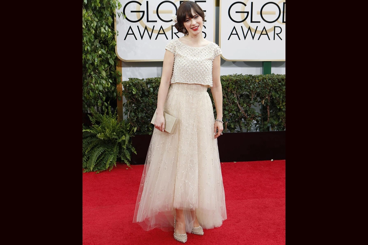 Accessories play a crucial role in Zooey's style, as she frequently enhances her outfits with statement jewellery, eye-catching shoes, and unique handbags. Her hair and makeup also contribute significantly to her overall look, often embracing a vintage vibe with soft waves and a classic cat-eye eyeliner. To elaborate more on this, let's check out a few of her best red carpet looks.
