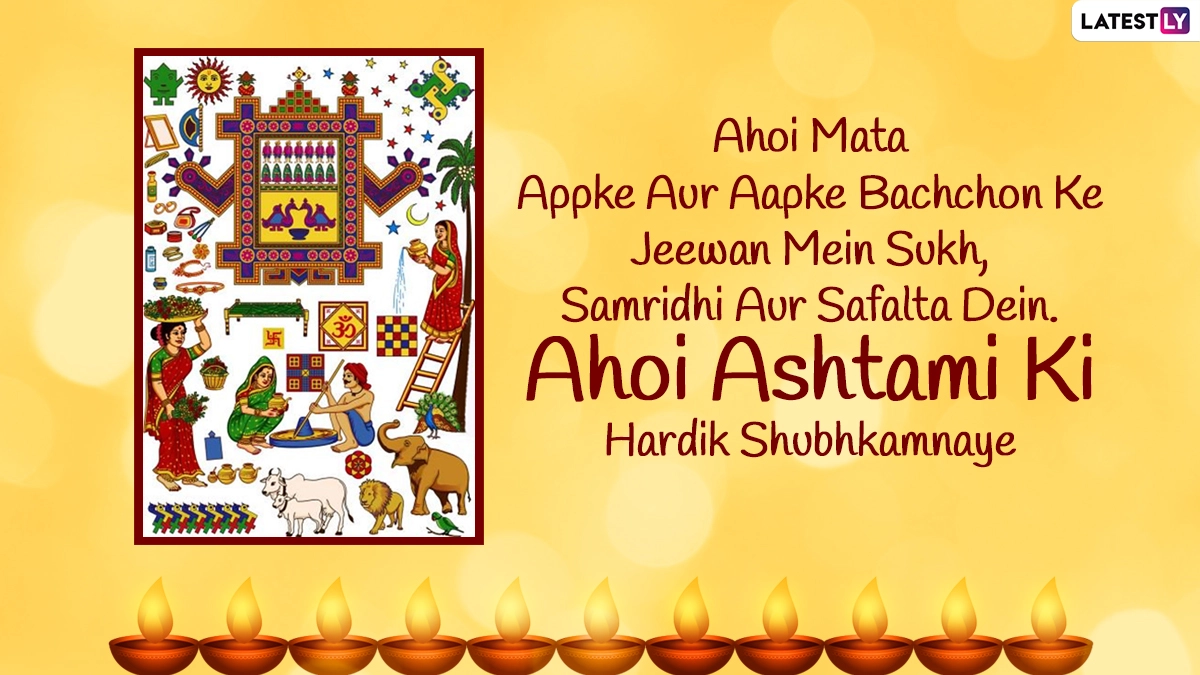 Ahoi Ashtami, also known as Ahoi Ashtami Vrat or Ahoi Aastami, is a significant Hindu festival celebrated primarily in northern India, particularly among the Punjabi and Hindu communities. Observed on the eighth day of the Krishna Paksha (waning phase of the moon) in the month of Kartik, this festival is dedicated to the worship of Ahoi Mata, a form of the goddess Parvati. It is celebrated by mothers who pray for the well-being and long life of their children, particularly sons. The festival emphasises the bond between mothers and their children, showcasing the love, devotion, and sacrifices that mothers make for their offspring. Ahoi Ashtami 2024 is on October 24. Devotees can mark the auspicious fasting day by sharing these Ahoi Ashtami 2024 wishes, images, HD wallpapers, messages, quotes, sayings and greetings.