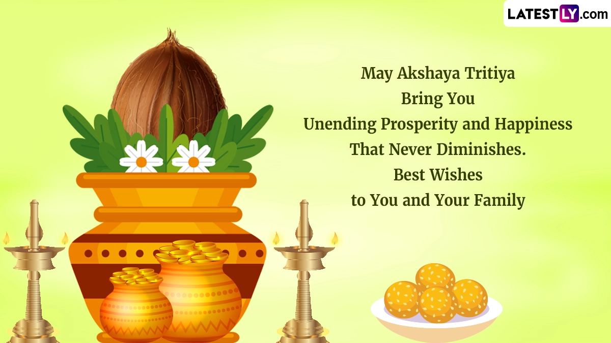Akshaya Tritiya holds immense religious significance. In Hindu tradition, it is believed that Lord Parashurama, the sixth incarnation of Lord Vishnu, was born on Akshaya Tritiya. It is also the day when Lord Ganesha and Ved Vyasa are said to have started writing the epic Mahabharata. According to legends, the Pandavas received the Akshaya Patra (a magical vessel of endless food) from Lord Krishna on this day, symbolising never-ending abundance. For Jains, Akshaya Tritiya marks the day when Lord Rishabhanatha (Adinatha), the first Tirthankara, broke his year-long fast with sugarcane juice. As you observe Akshaya Tritiya 2025, share these Akshaya Tritiya 2025 wishes, greetings, Akha Teej HD images, quotes, messages and wallpapers. April 2025 Holidays and Festivals Calendar: Complete List of Important Dates and Events in the Fourth Month of the Year.