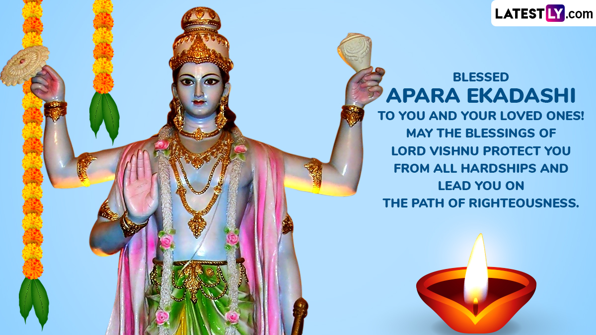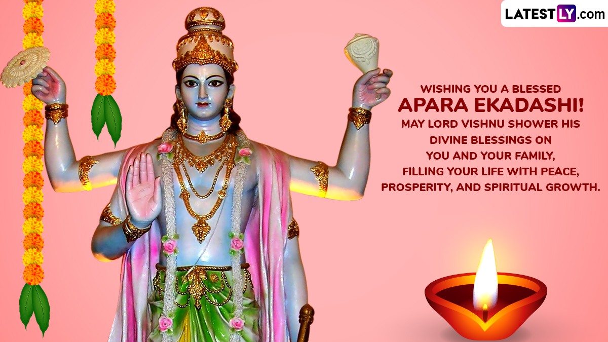 The term âAparaâ means âimmenseâ or âboundless,â highlighting the belief that the benefits of observing this vrat (fast) are immeasurable. According to ancient scriptures, those who sincerely observe Apara Ekadashi Vrat are relieved from the burden of past misdeeds and achieve spiritual upliftment. This Ekadashi is also said to offer results equivalent to performing sacred pilgrimages and religious charities. Legends say even sinful kings and fallen warriors found redemption through this vrat. As you observe Apara Ekadashi Vrat 2025, we at LatestLY have brought together a collection of messages that you can download and share with all your friends and family to wish them on this day with WhatsApp stickers, images, HD wallpapers and SMS.