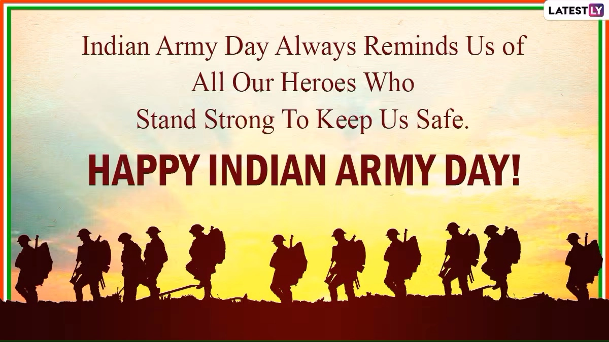 Indian Army Day is celebrated every year in the country with a lot of joy and enthusiasm. Indian Army Day 2025 falls on Wednesday, January 15. The celebration is dedicated to honouring the valour, sacrifices, and bravery of the Indian soldiers. It also marks the day when Field Marshal KM Cariappa became the first Indian Commander-in-Chief of the Indian Army in 1949. This day commemorates the army’s service in protecting the country and its unity. The day is celebrated with parades, tributes, events, seminars, workshops, cultural programmes, processions, and speeches. To celebrate the day, share Indian Army Day 2025 wishes and greetings. Indian Army Day 2025: The Grenadiers Regiment of the Indian Army; Its Role, History and Notable Achievements To Honour the Military Unit (Watch Video).