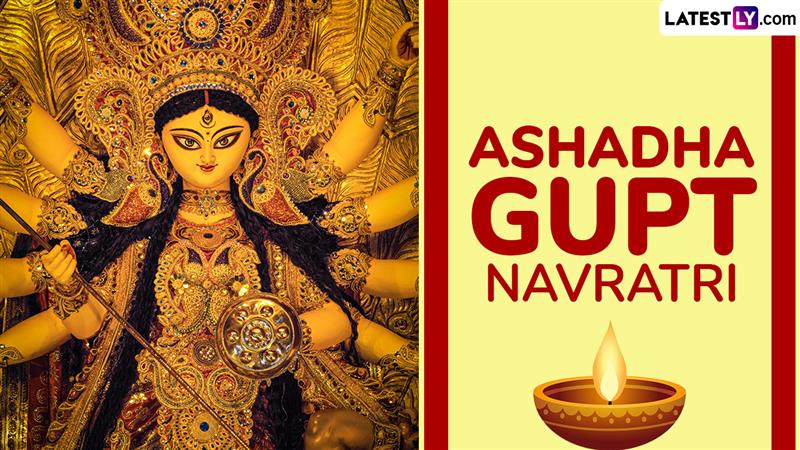 Ashadha Gupt Navratri 2025 starts on June 26 to July 4. It is a spiritually significant festival observed during the Ashadha month (June-July) of the Hindu calendar. Unlike the more widely celebrated Chaitra and Sharadiya Navratris, Ashadha Gupt Navratri is considered esoteric and primarily observed by Tantric practitioners and devotees seeking spiritual advancement and divine blessings. It spans nine nights and ten days, dedicated to worshipping the nine forms of Goddess Durga, with an emphasis on secret (gupt) and intense sadhanas, rituals, and mantras. The festival is especially important for those on the path of tantra and occult practices, and it's believed to be a powerful time for seeking the Goddess's protection, strength, and wisdom. To celebrate Ashadha Gupt Navratri 2025, we bring you Ashadha Gupt Navratri 2025 wishes and images for free download online. These Ashadha Gupt Navratri images are perfect to share with WhatsApp messages, quotes, greetings and Goddess Durga wallpapers to celebrate Navratri festival.