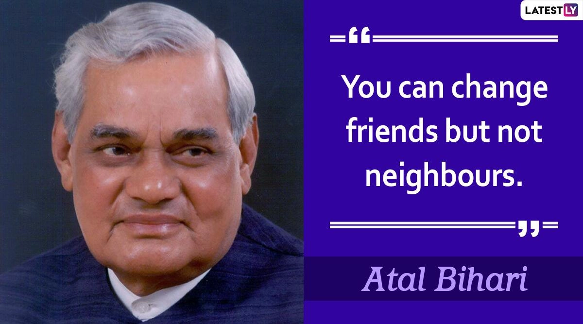 The birth anniversary of Atal Bihari Vajpayee, celebrated on December 25, honours the legacy of one of India’s most revered leaders. A visionary statesman, poet, and orator, Vajpayee served as the Prime Minister of India and left an indelible mark on the nation's political and cultural landscape. His birthday, also observed as Good Governance Day, is a reminder of his commitment to democratic principles and his enduring contributions to the nation’s progress. Good Governance Day 2024 is the 100th birth anniversary of Atal Bihari Vajpayee. On this day, we bring you Atal Bihari Vajpayee quotes, messages, sayings, images and HD wallpapers to honour India's visionary leader. Good Governance Day 2024 Date, History and Significance: All You Need to Know About the Day That Marks the Birth Anniversary of Atal Bihari Vajpayee.
