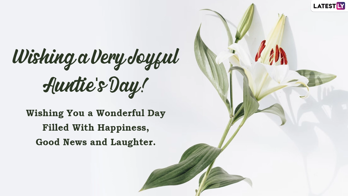 Auntie's Day is a delightful celebration dedicated to honouring the special relationship between aunts and their nieces and nephews. This unofficial holiday, typically observed on the fourth Sunday in July, recognises the unique role that aunts play in the lives of children and families worldwide. Aunts often bring a blend of love, guidance, and fun into their nieces' and nephews' lives, offering a supportive presence that complements parental care. As you observe Auntie’s Day 2024, we at LatestLY have brought together a collection of messages that you can download and share with all your loved ones to wish them on this day with WhatsApp stickers, images, HD wallpapers and SMS. Happy Aunt and Uncle's Day 2024 in US Wishes and Photos: WhatsApp Messages, GIF Images, HD Wallpapers and SMS To Share With Lovely Aunts and Uncles.