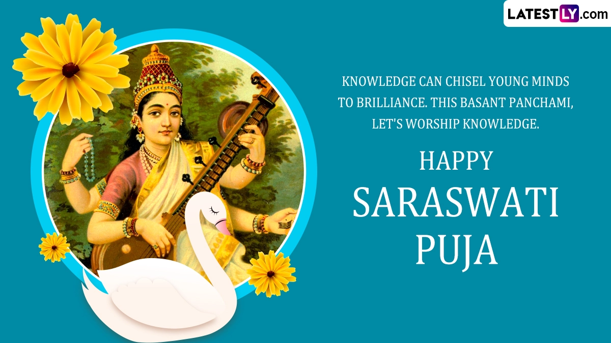 Basant Panchami celebration begins with devotees donning yellow attire, symbolising energy, prosperity, and the vibrant hues of spring. Homes and temples are adorned with yellow flowers, and special pujas are conducted to honour Goddess Saraswati. Offerings of sweets, fruits, and yellow-coloured dishes, such as saffron rice, are prepared. Schools and educational institutions often organize Saraswati Puja, where students place their books and instruments near the goddess's idol, praying for enlightenment and success. As you observe Basant Panchami 2025, share Basant Panchami 2025 wishes, Happy Saraswati Puja greetings, messages, HD wallpapers, quotes and images. From Offering Books Maa Saraswati to Wearing Yellow, Things To Do for Good Luck & Prosperity on Basant Panchami.