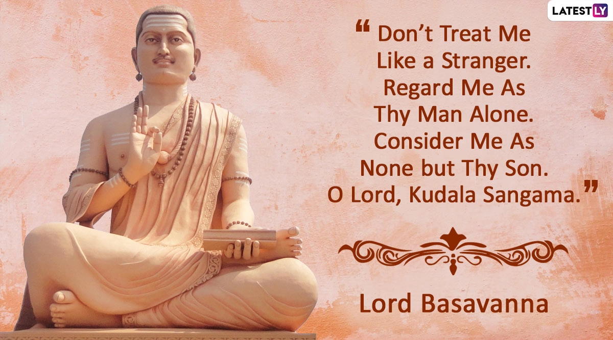 Basava Jayanti Shubhashayagalu! Basava Jayanti 2024Ā is celebratedĀ on Friday, May 10. It commemorates the birth anniversary of Basavanna, a 12th-century philosopher, statesman, and social reformer from Karnataka, India. Basavanna, also known as Basaveshwara, was the founding saint of the Lingayat sect and advocated for social equality, harmony, and the eradication of caste-based discrimination. His teachings emphasised the importance of devotion, selfless service, and ethical conduct, and his legacy continues to inspire millions of people, particularly in Karnataka, where Basava Jayanti is celebrated with great reverence through various cultural and religious events, processions, and spiritual discourses. As you observe Basava Jayanti 2024, we at LatestLY have compiled a collection of Basava Jayanti wishes, HappyĀ Basava Jayanti 2024 greetings,Ā Basava Jayanti images, HD wallpapers and SMS that you can download and share with one and all as the greetings for the day. "Basava Jayanti Shubhashayagalu", meaning "Best wishes for Basava Jayanti", is a common phrase in Kannada to wish on this day.