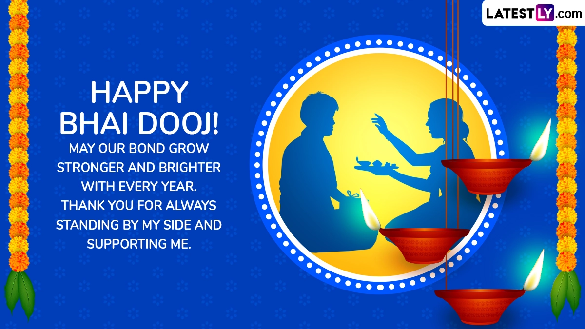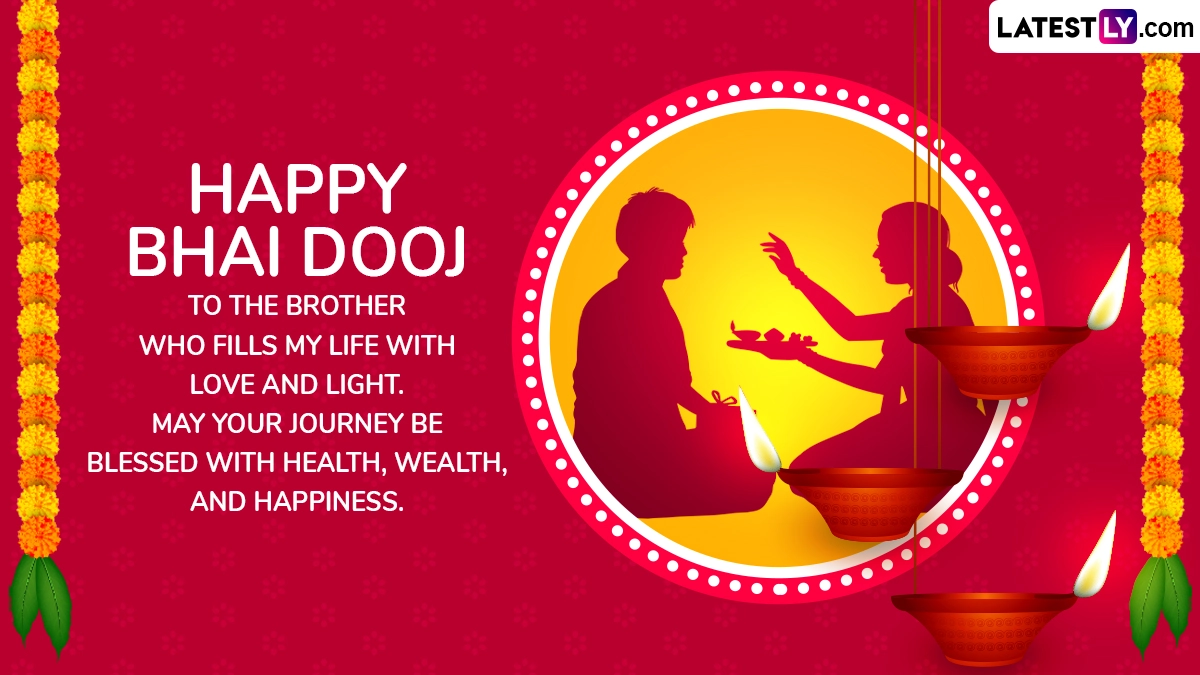 Bhai Dooj, also known as Bhaiya Dooj, Bhau Beej, or Yama Dwitiya, is a popular Hindu festival celebrated two days after Diwali. The festival marks the beautiful bond between brothers and sisters, symbolizing love, protection, and lifelong faith. According to the Hindu calendar, Bhai Dooj falls on the second day of Shukla Paksha in the month of Kartik. Bhai Dooj 2025 will be celebrated on Friday, October 23. On this occasion, if you want to cherish the bond between you and your brother, below are Bhai Dooj wishes, greetings, WhatsApp Messages, SMS, Bhau Beej images and HD wallapers to share.