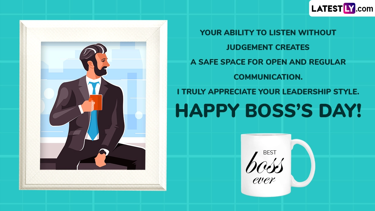 Boss's Day, observed on October 16, is a day to recognise and appreciate the contributions of supervisors and managers. Established in 1958 by Patricia Bays Haroski to honour her boss, the day is meant to strengthen relationships between employees and their leaders by acknowledging their efforts in managing teams and providing guidance. It's a time to show gratitude for the hard work and decision-making that goes into leadership roles, fostering a positive and respectful work environment. As you celebrate Boss’s Day 2024, share these Happy Boss’s Day 2024 wishes, greetings, images, HD wallpapers, WhatsApp messages, quotes and GIFs.