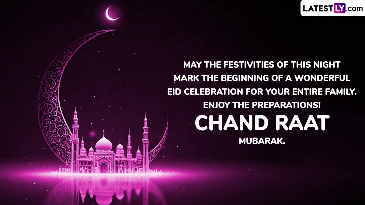 Eid Chand Raat Mubarak Wishes: May the Festivities of This Night Mark the Beginning of a Wonderful Eid Celebration for Your Entire Family. Enjoy the Preparations! Chand Raat Mubarak.