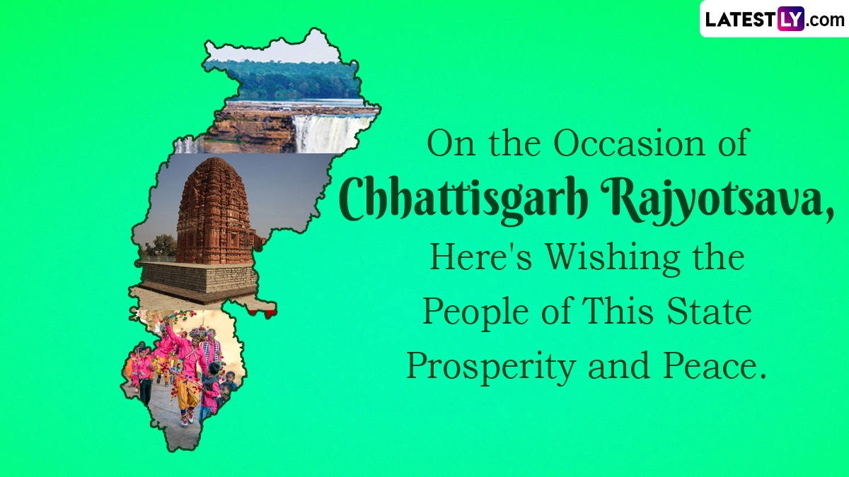 Chhattisgarh Rajyotsava, also called Chhattisgarh Formation Day, Chhattisgarh Diwas, Chhattisgarh Statehood Day or Chhattisgarh Day is celebrated on November 1 every year in the state. Chhattisgarh Rajyotsava 2024 falls on Friday, November 1. The day marks the official formation day of the state. Formerly a part of Madhya Pradesh, Chhattisgarh was officially designated as an independent state on November 1, 2000 and declared as the country’s 26th state. November 1 is a state-wide holiday in Chhattisgarh, and the day is celebrated with a series of events. To kick off the celebrations, we have curated a list of Chhattisgarh Rajyotsava 2024 wishes, Chhattisgarh Rajyotsava messages, Chhattisgarh Formation Day greetings, Chhattisgarh Day images and Chhattisgarh Rajyotsava quotes and wallpapers. Chhattisgarh Rajyotsava Date, History and Significance: Everything To Know About the Chhattisgarh Foundation Day or Chhattisgarh Sthapna Diwas.