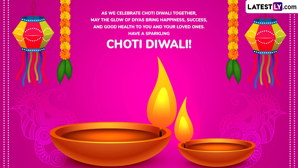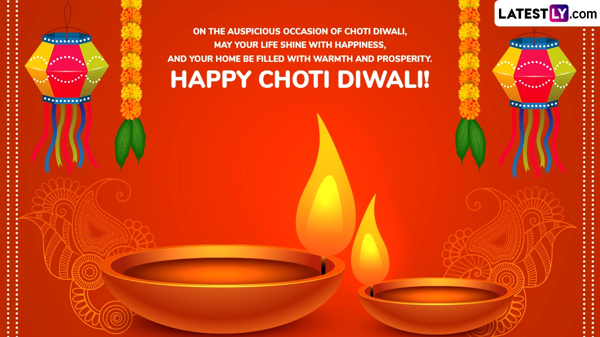 Diwali is one of the most important festivals for Hindus across the globe. Devotees decorate their homes and visit relatives, family and friends. Homes, societies, communities and organisations are lit up with dazzling fireworks, string lights, gorgeous marigold flower decorations and garlands, and beautiful rangoli designs. Devotees prepare sweets and delicacies and perform rituals. On Choti Diwali, people visit temples, offer prayers and seek the blessings of Lord Krishna and Goddess Lakshmi. If you are searching for Choti Diwali messages to share with your loved ones, look no further! We have curated a list of Choti Diwali 2024 wishes, Choti Diwali messages, Choti Diwali greetings, Diwali HD images and wallpapers, and Choti Diwali quotes that you can download and share with your near and dear ones. Choti Diwali 2024 Wishes, Greetings and HD Images: Naraka Chaturdashi Messages, Quotes, Diya Photos, Happy Diwali GIFs and Wallpapers for Family and Friends.