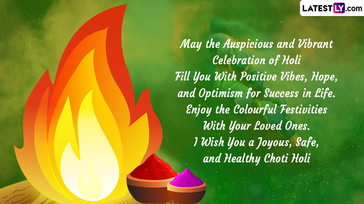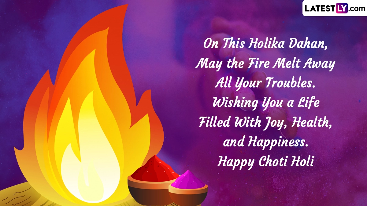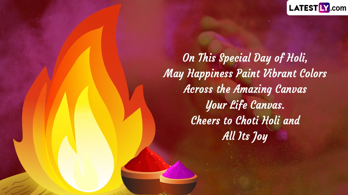 Choti Holi, also known as Holika Dahan, is celebrated on the eve of Holi, marking the victory of good over evil. It falls on the full moon night (Purnima) of the Phalguna month, a day before the vibrant festival of colours. Choti Holi 2025 will be celebrated on March 13. The day holds great religious significance as it symbolises the burning of Holika, a demoness who tried to harm Prahlad, a devotee of Lord Vishnu. The festival serves as a reminder that righteousness always triumphs over wickedness. To celebrate the festival of colours, share these Choti Holi 2025 wishes, Happy Holi greetings, Holika Dahan HD images, wallpapers, GIFs, quotes and messages with your friends and family. Holika Dahan 2025 Date in India: What Is the Story of Prahlad and Holika?