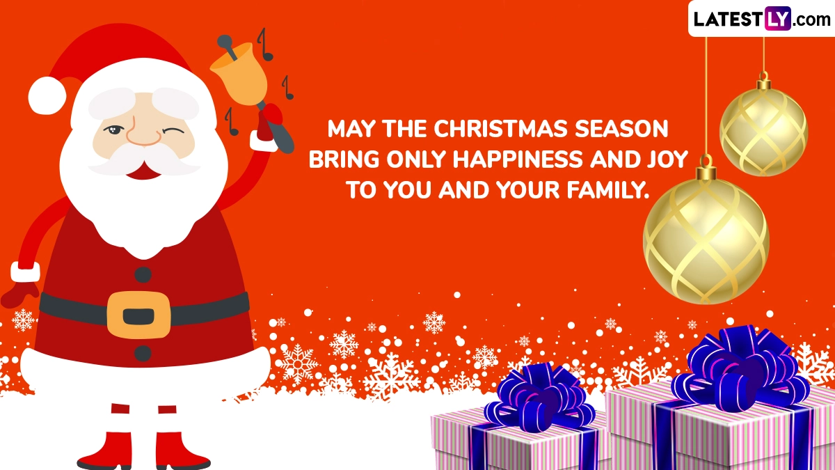 Sharing Christmas wishes is a heartfelt tradition that spreads the joy and warmth of the season. Whether delivered in person, written in cards, or sent via digital messages, these wishes convey love, gratitude, and best hopes for the coming year. A simple “Merry Christmas” carries a universal sentiment of goodwill, making it a timeless way to brighten someone’s holiday. As you celebrate Christmas 2024, we at LatestLY, bring you Christmas 2024 greetings, Happy Holidays images, Xmas wallpapers, WhatsApp messages, quotes and GIFs.