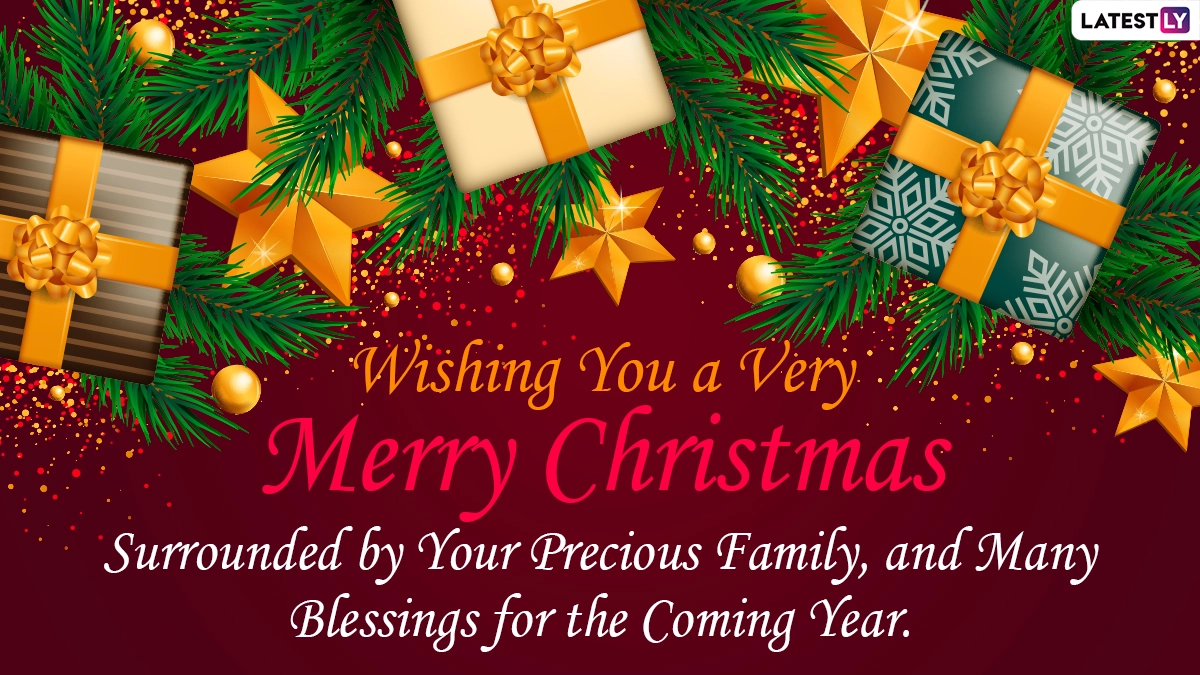 Christmas is the most-awaited and cherished festival celebrated across the globe with great fanfare on December 25. The day marks the birth of Jesus Christ. The holiday has evolved into a season that unites people through traditions, generosity, and hope. Celebrating Christmas is more than a festive occasion as it brings together families to have a joyous and memorable time. As we celebrate Christmas 2024, we at LatestLY, bring you Merry Christmas 2024 wishes and messages, Christmas 2024 greetings, Christmas 2024 HD wallpapers, Santa Clause HD images, Season's greetings, Christmas pictures, GIFs and Christmas 2024 photos, which you can download and share with your family, friends and relatives. You can also download these Merry Christmas images and send them as Merry Christmas wishes or greetings.