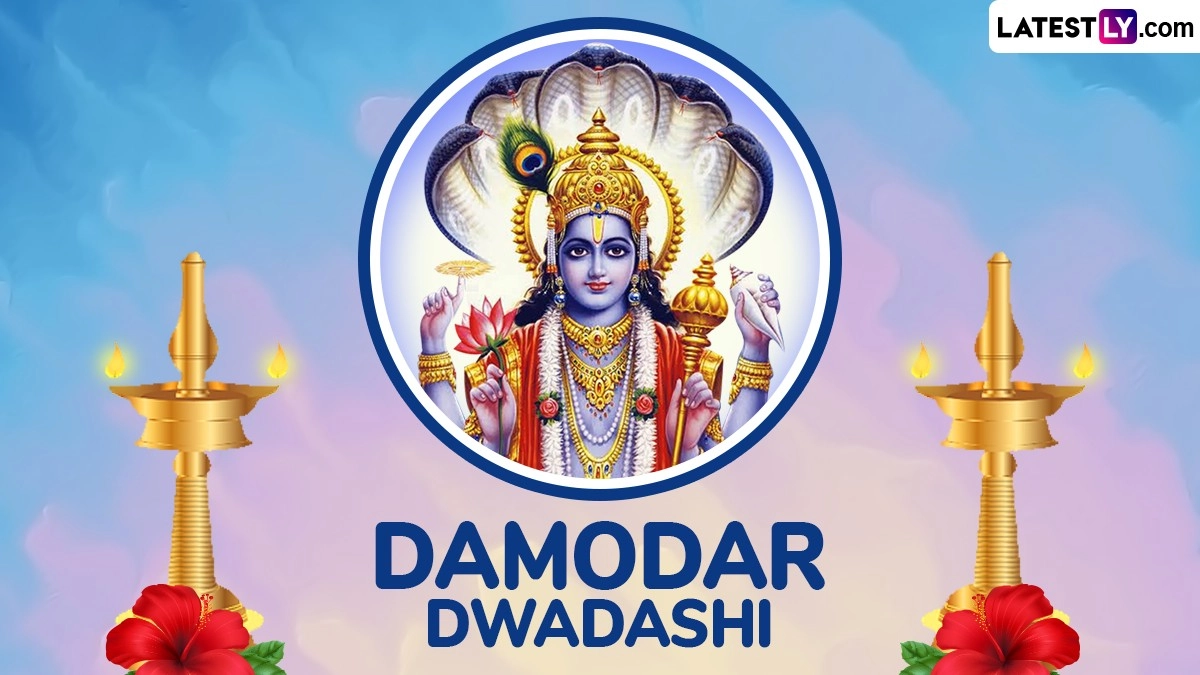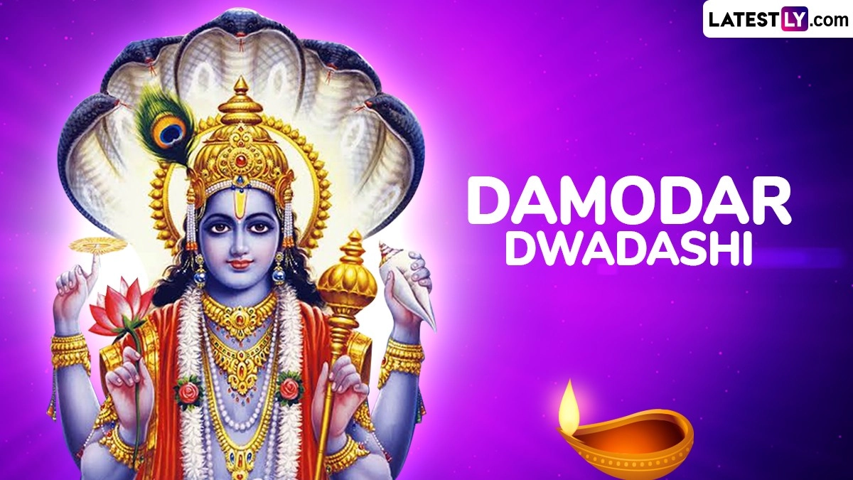 Damodar Dwadashi is a Hindu festival observed dedicated to Lord Damodar, an incarnation of Lord Krishna, and holds particular significance for devotees who follow the Vaishnavism tradition. The festival is a time for deep devotion and reflection on the divine qualities and pastimes of Lord Damodar, who is revered for his role in the divine leelas (pastimes) of Krishna. Damodar Dwadashi 2024 falls on Friday, August 16. On the auspicious occasion, you can download these Damodar Dwadashi 2024 wishes and HD images for free to share and wish your dear ones. These Damodar Dwadashi 2024 messages, wallpapers and photos are perfect to celebrate the day dedicated to Lord Damodar.