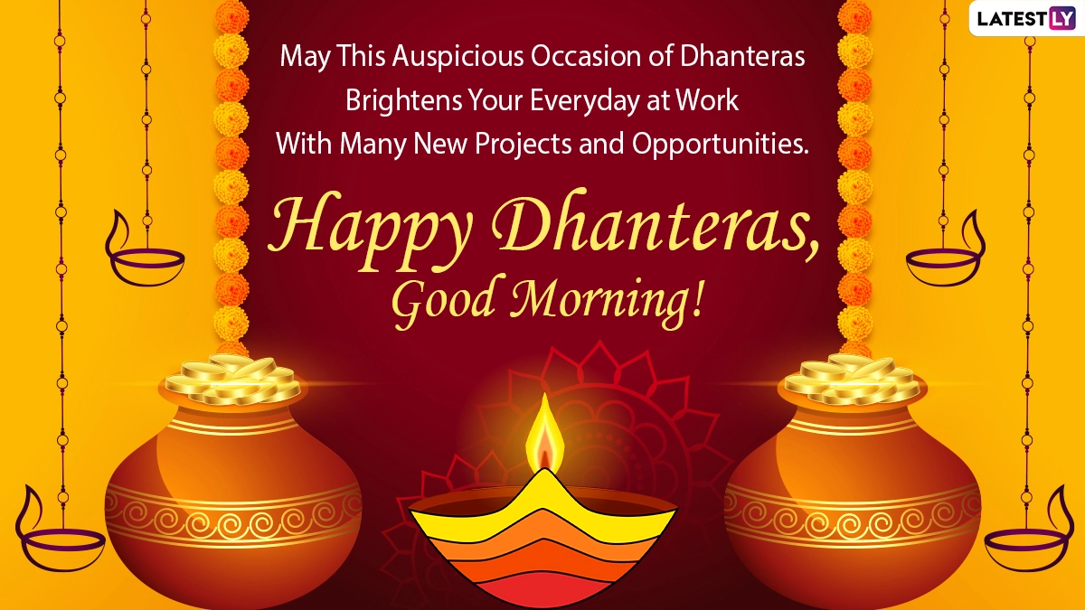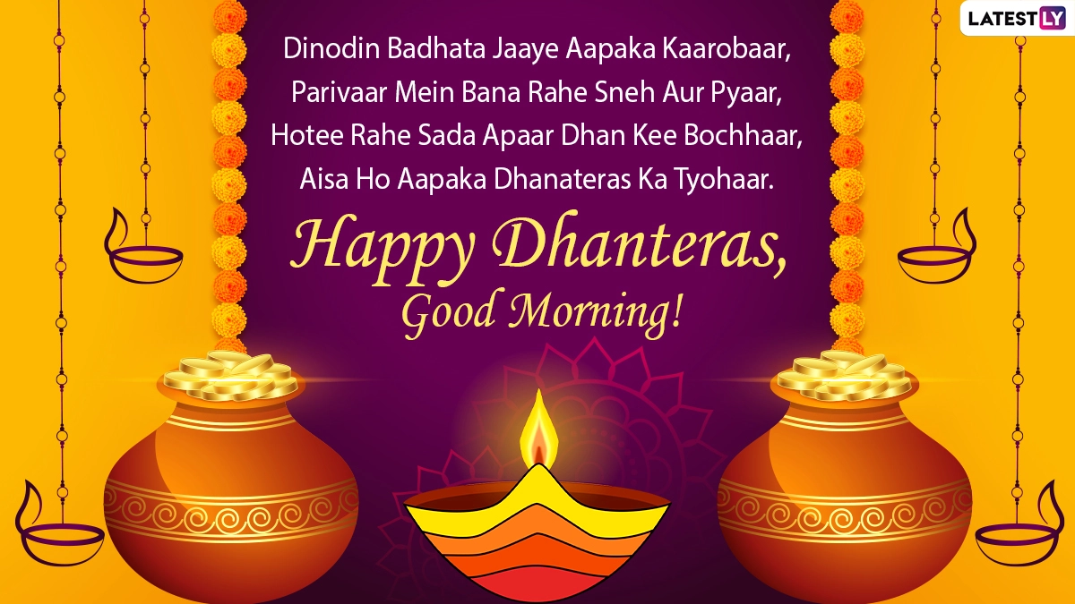 It is the Dhanteras 2020 morning, and we cannot contain our joy thinking Diwali, the ‘Festival of Lights’ is just a day away. We would like to wish everyone a very Happy Dhanteras on this beautiful morning. And just like us, you too should go ahead and wish your family and friends, Happy Dhanteras 2020 and Good Morning. Here’s a collection of Dhanteras Good Morning Images, Happy Dhanteras 2020 greetings, Good Morning HD Images, Good Morning text messages, Happy Dhanatrayodashi WhatsApp Stickers, Good Morning GIFs, Dhanteras SMS in Hindi and English, and more.