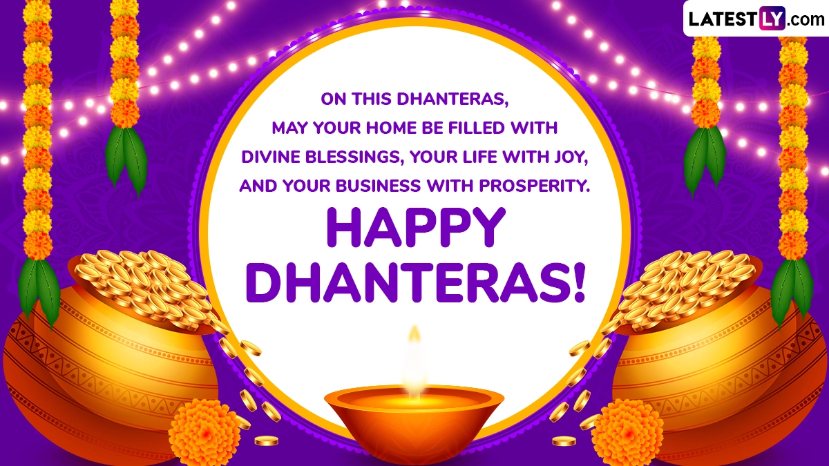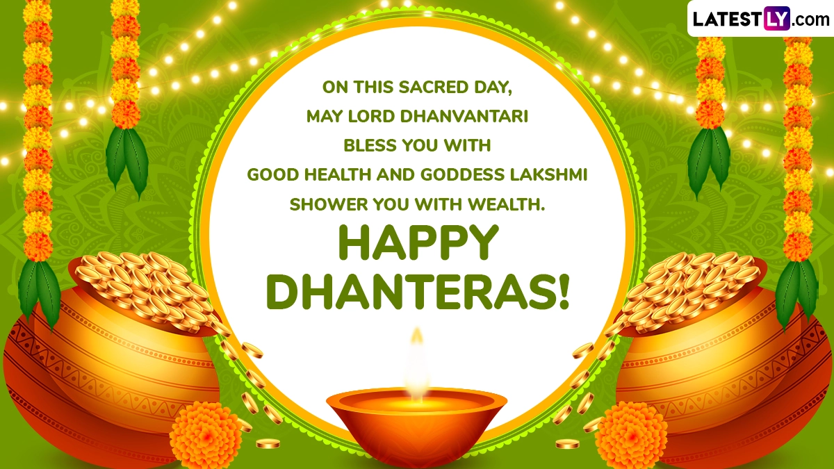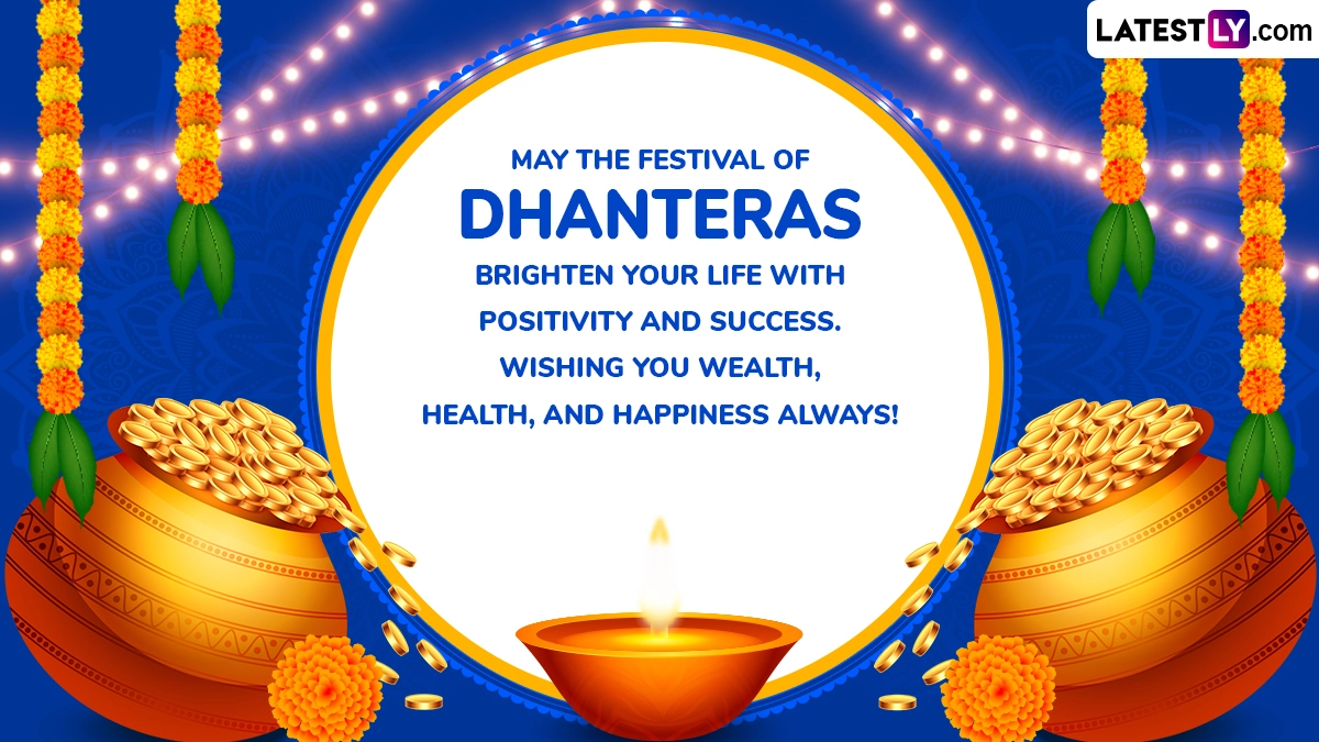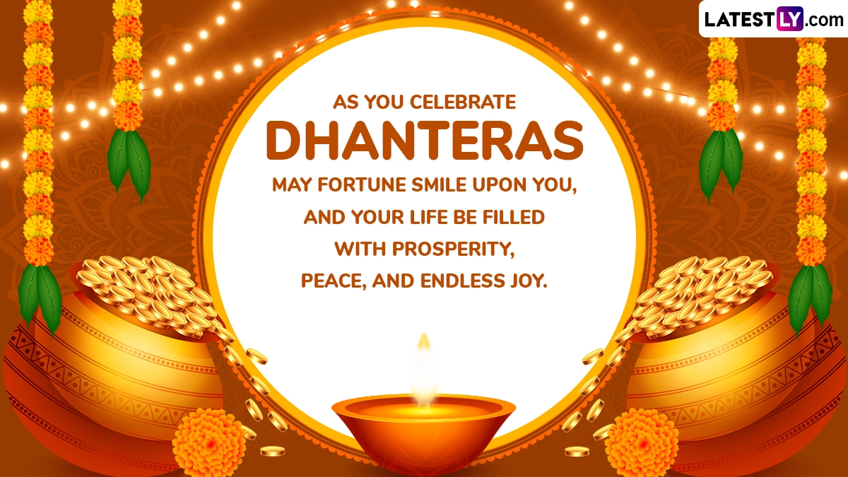 Dhanteras, also known as Dhantrayodashi, marks the start of the five-day auspicious festival of Diwali in India. Dhanteras is celebrated on the 13th day of the Hindu month of Ashwin, which usually falls in October or November in the Gregorian calendar. This year, Dhanteras 2025 falls on Saturday, October 18. The word Dhanteras comes from “Dhan” meaning wealth and “Teras” meaning the thirteenth day. The day holds great religious and cultural importance as it is devoted to Lord Dhanvantari, the divine physician and God of health, and Goddess Lakshmi, the goddess of wealth and prosperity. As we celebrate Dhanteras 2025, we at LatestLY have compiled a list of Dhanteras 2025 wishes, Dhantrayodashi 2025 greetings, Dhanteras 2025 images and HD wallpapers, Dhantrayodashi 2025 images, which you can download and share with your family, friends and relatives.