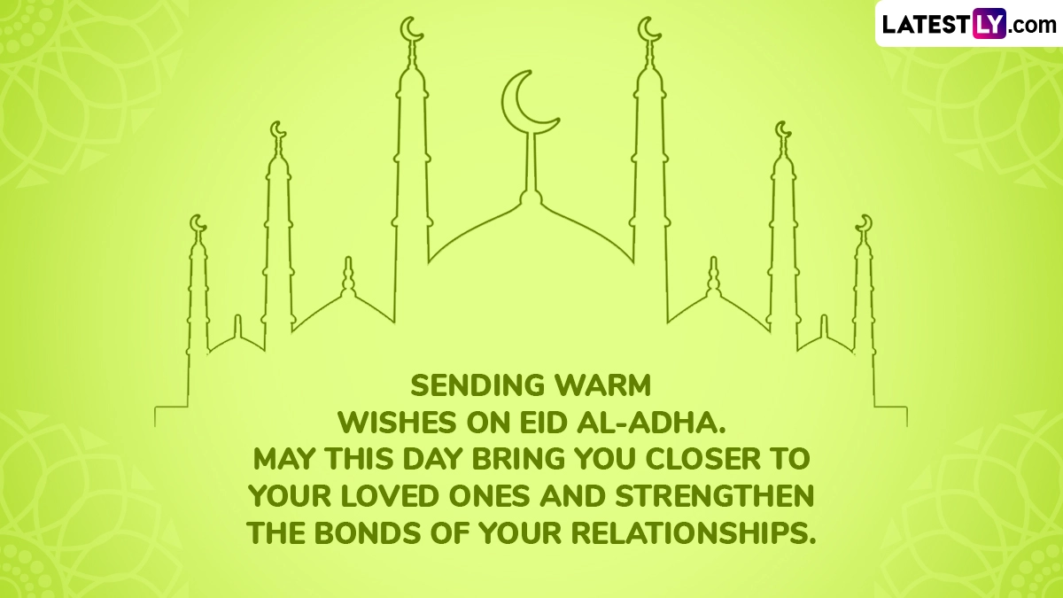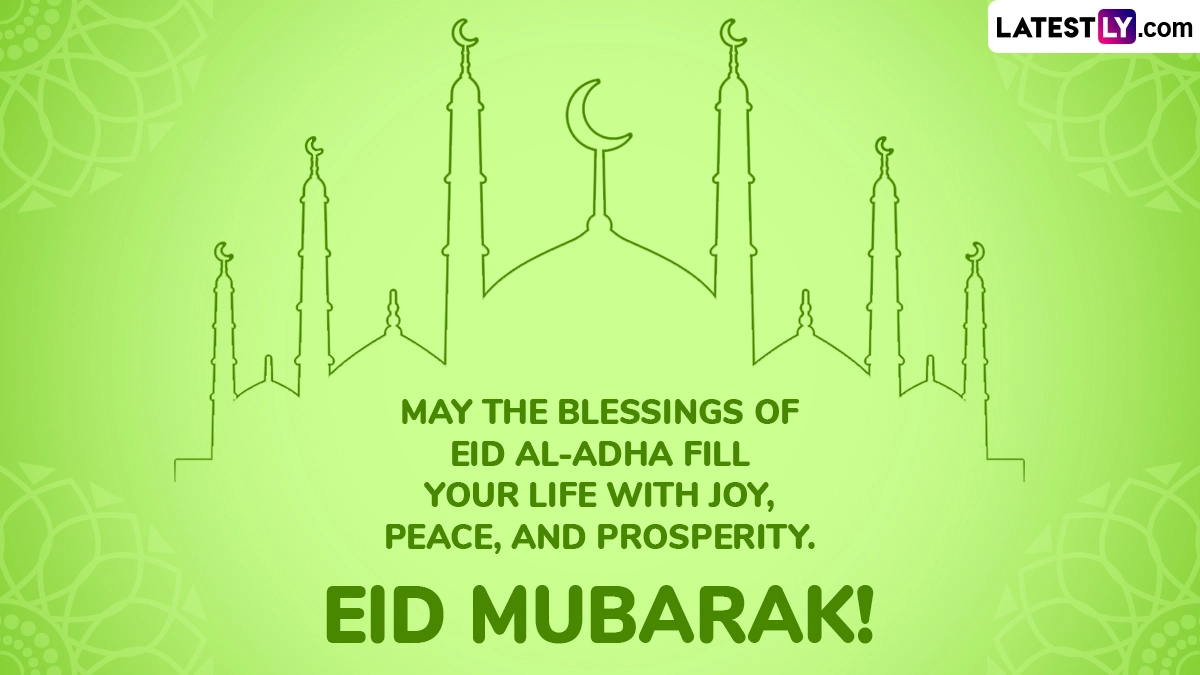 Eid al-Adha is one of the two major Islamic holidays celebrated with great devotion by Muslims around the world. It is also known as Bakrid, Bakra Eid, Eid ul-Adha or Festival of Sacrifice and commemorates the willingness of Prophet Ibrahim to sacrifice his son Ismail (Ishmael) as an act of obedience to God's command. However, God intervened and provided a ram to sacrifice instead. Eid al-Adha falls on the 10th day of Dhul Hijjah month and Eid al-Adha 2025 is on on Friday, June 6 evening and the following day on June 7. As Eid al-Adha 2025 is here, we bring you Eid Mubarak 2025 wishes, Bakrid messages, WhatsApp greetings, Eid ul-Adha HD images, Bakra Eid wallpapers and photos that you can share with your friends and family to celebrate the festival.