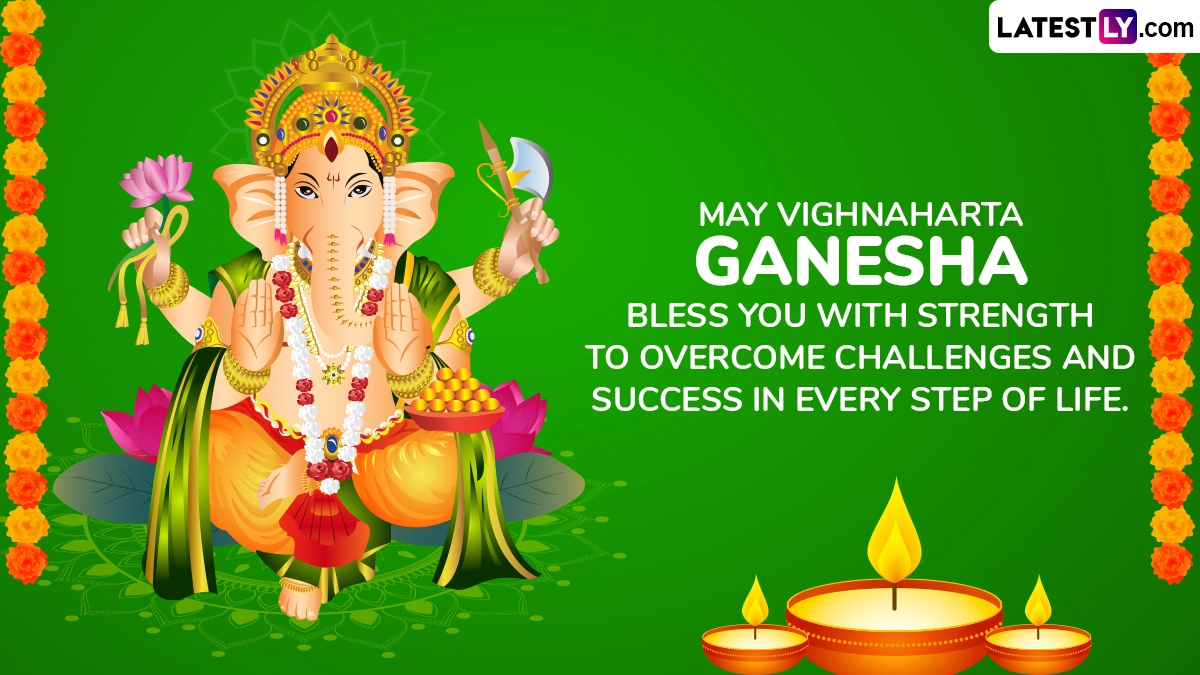WhatsApp Message Reads: May Vighnaharta Ganesha Bless You With Strength To Overcome Challenges and Success in Every Step of Life.