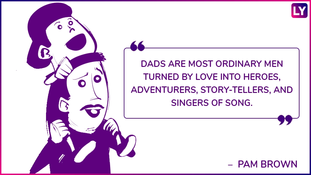 The Quote Reads: "Dads are most ordinary men turned by love into heroes, adventurers, story-tellers, and singers of song." – Pam Brown