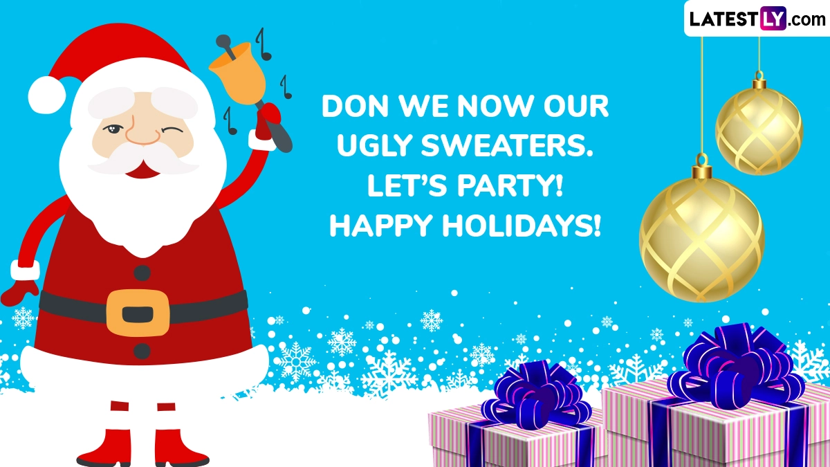 WhatsApp Message Reads: Don We Now Our Ugly Sweaters. Let’s Party! Happy Holidays!