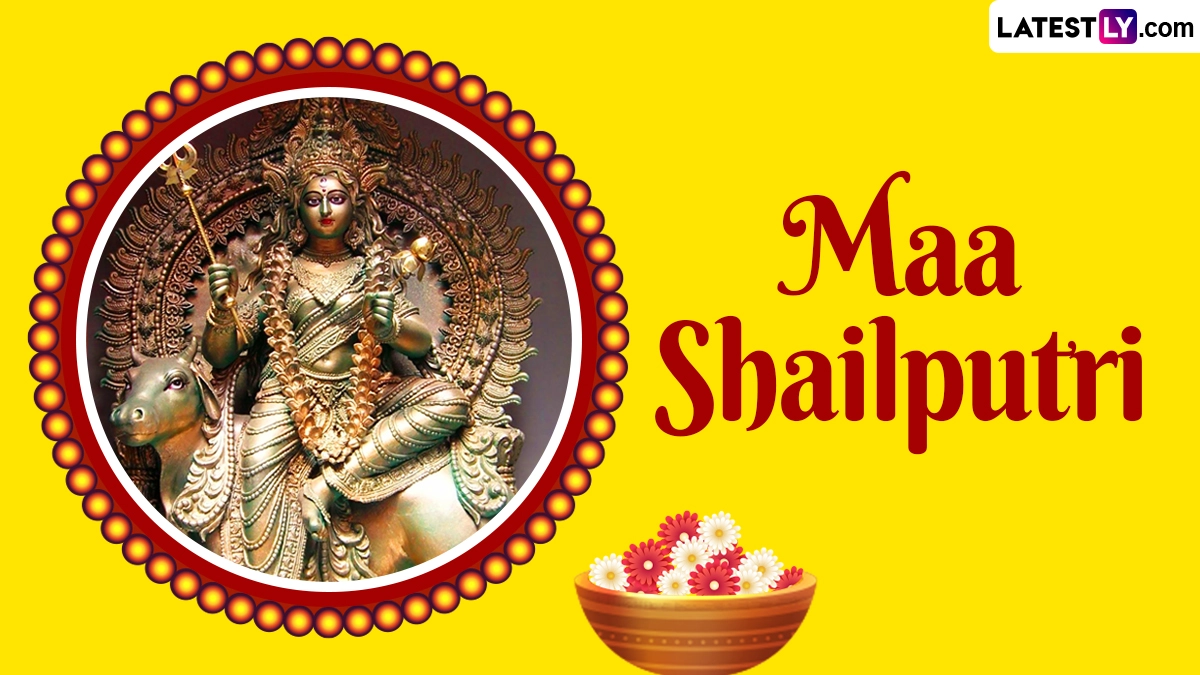 In her depiction, Goddess Shailputri is characterised by a half-moon adorning her forehead. She holds a trident in her right hand and a lotus flower in her left, symbolising her divine powers. Often, she is seen seated on the sacred bull, Nandi, representing strength and devotion. Homes are adorned with decorations, and devotees gather for rituals, sharing prayers and offerings as they invoke the divine energy of the Goddess. Families often prepare special dishes, and communal gatherings enhance the spirit of togetherness. The exchange of First Day of Navratri 2024 messages that express goodwill and blessings reinforces the sense of unity and devotion, making the celebration not just a personal observance but a collective experience that strengthens bonds within the community. Check out the best First Day of Navratri 2024 wishes, greetings and HD images: